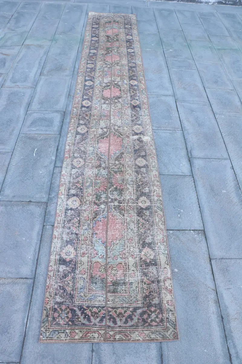 Blue Ombré Rug, 2x12.4 ft with Orange Accents