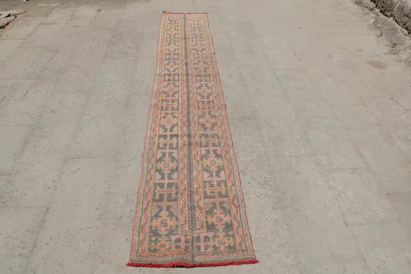 Red & Blue Rug, 1,8x11,1 ft Geometric Floral Design