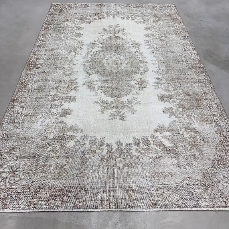 Elegant Beige Rug with Brown Accents, 6,6x10,6 ft