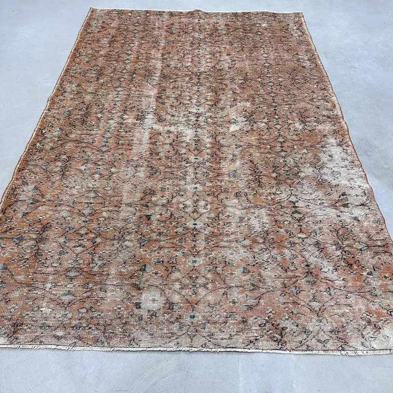Vibrant Orange Rug, 6,2x9,2 ft Floral & Paisley Design