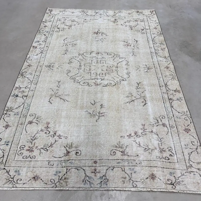 Elegant Beige & Black Rug, 5.5x8.5 ft Floral & Geometric
