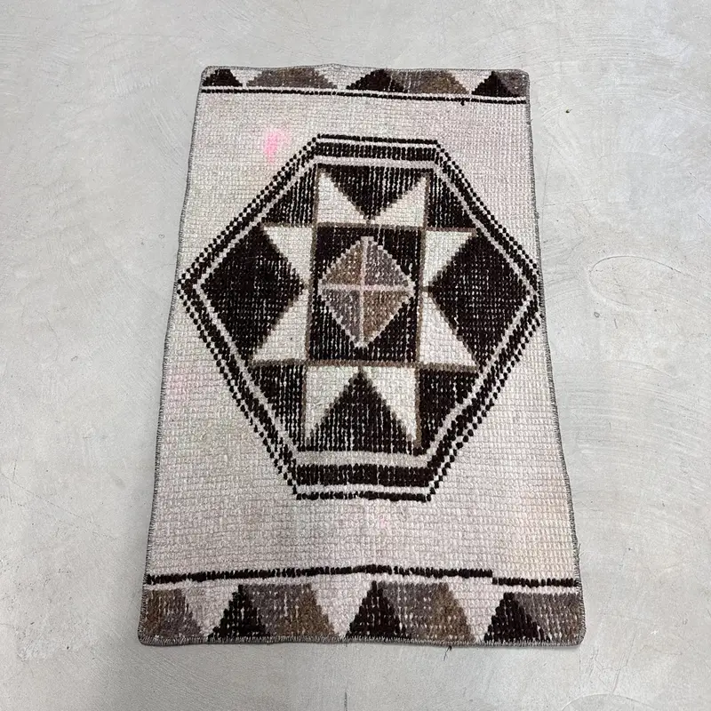 Elegant Beige Ikat Rug, 1,9x3,1 ft with Brown Accents
