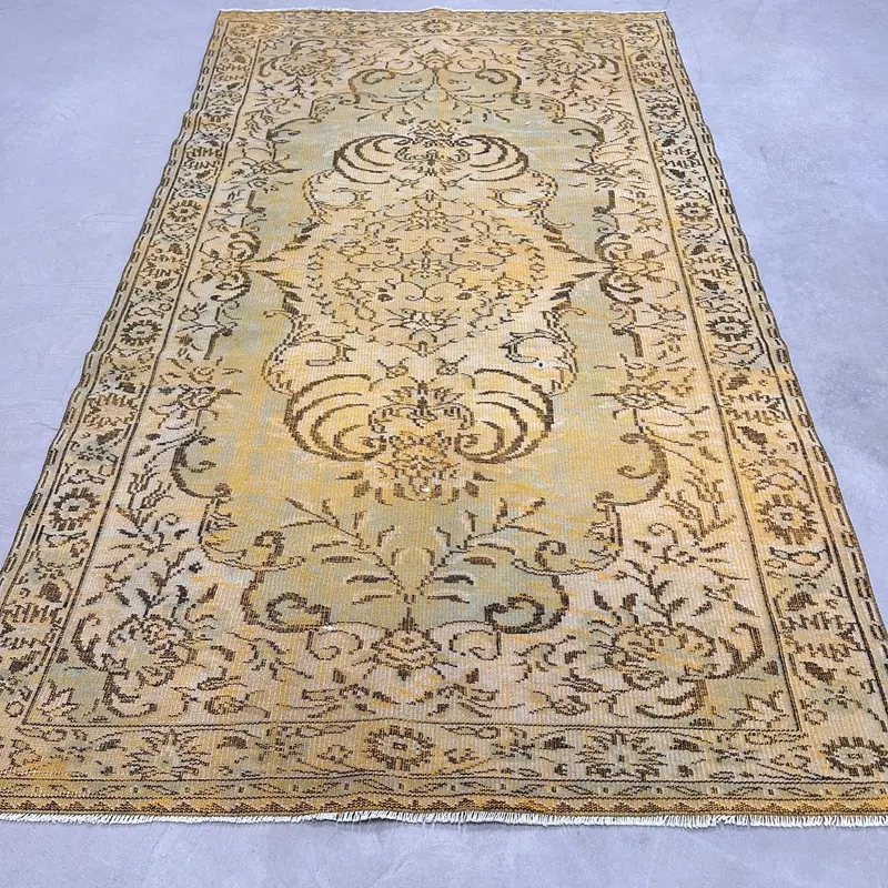 Yellow & Brown Rug, 5,7x9,8 ft Geometric Floral Design