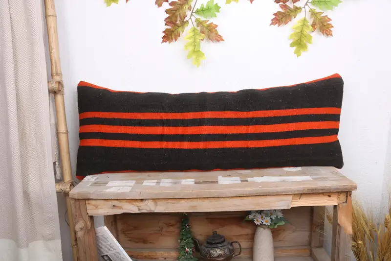 Brown & Orange Striped Throw Pillow, Handmade Rectangular Cushion