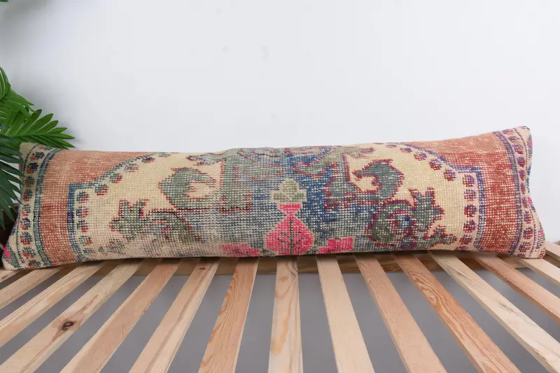 Handmade Southwestern Embroidered Pillow, Vintage Orange & Pink Throw Pillow