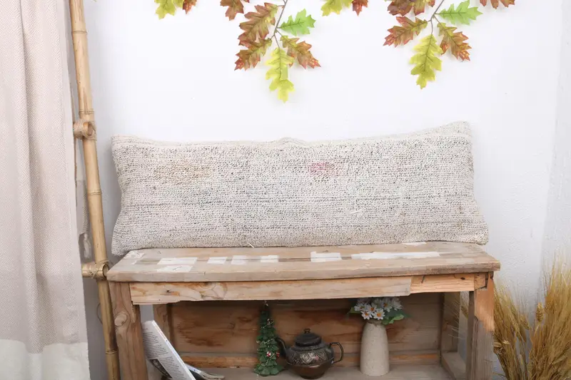 Geometric White & Brown Pillow, 12x36 Handmade Throw Pillow