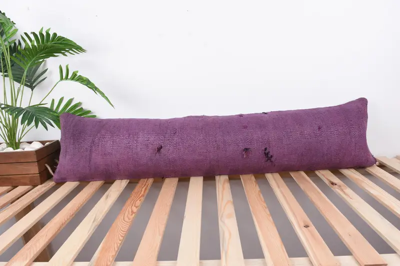 Purple Southwestern Embroidered Throw Pillow, 12x48 Handmade Cushion