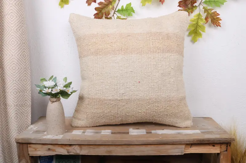 Beige & Brown Striped Throw Pillow, 20x20 Embroidered Cushion