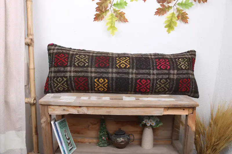 Brown & Red Geometric Throw Pillow, Handmade Cushion with Vintage Charm