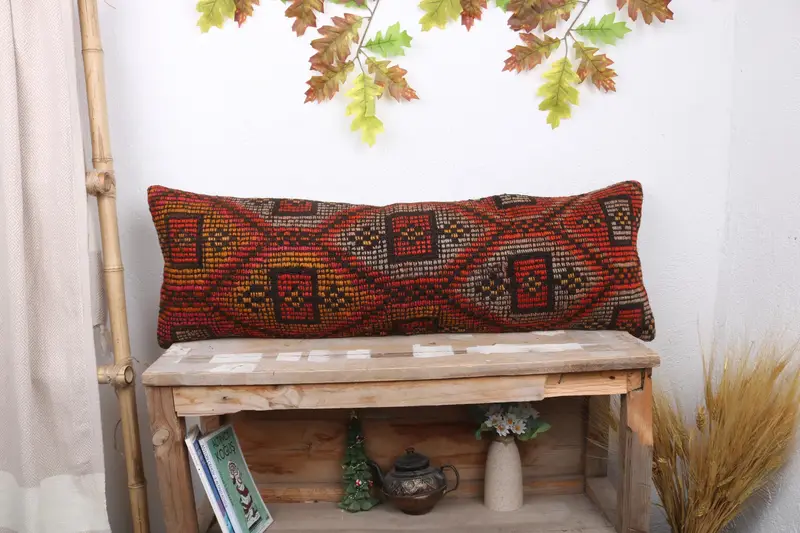 Orange & Red Geometric Throw Pillow, Handmade Embroidered Cushion