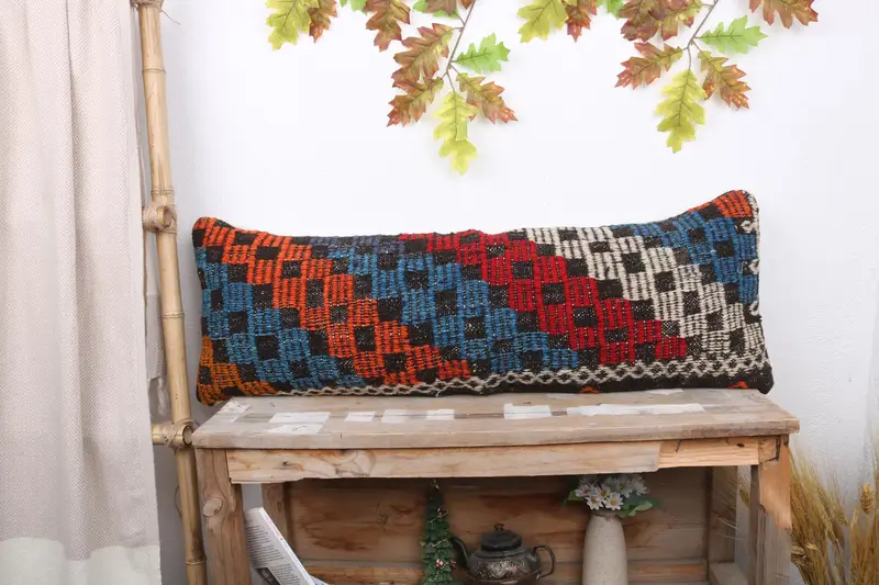 Blue & Orange Geometric Throw Pillow, Handmade Linen Cushion