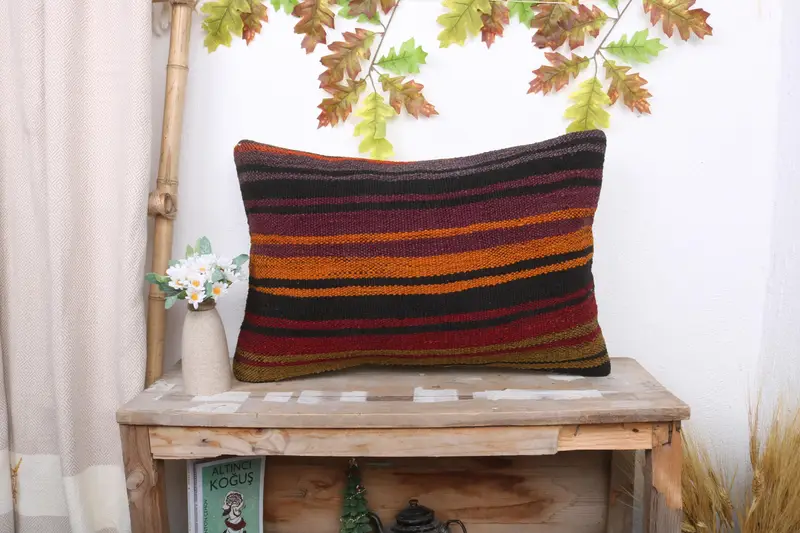 Brown & Orange Striped Pillow, 16x24 Embroidered Throw Pillow