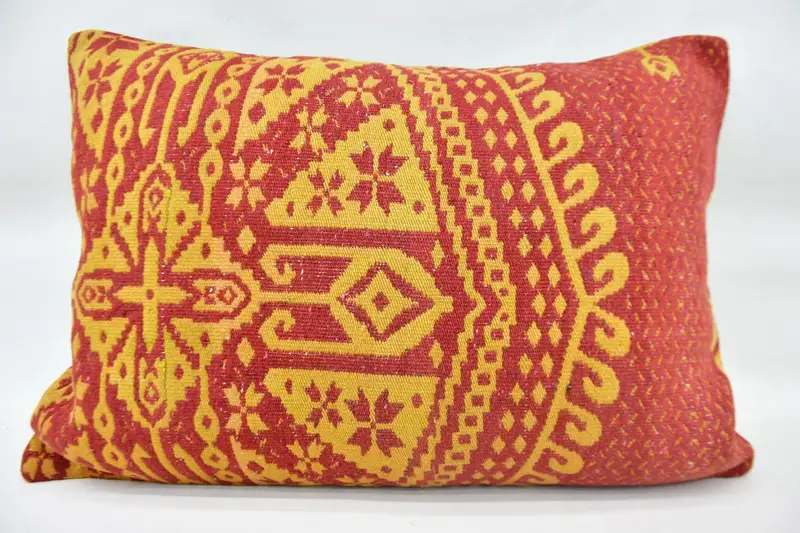 Red & Yellow Embroidered Throw Pillow, Handmade 20x28 Cushion