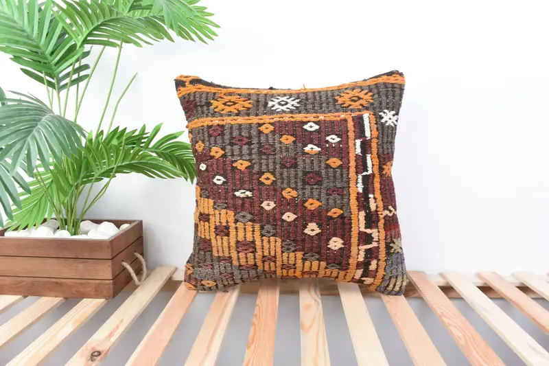 Brown & Red Southwestern Throw Pillow, Vintage Embroidered Cushion
