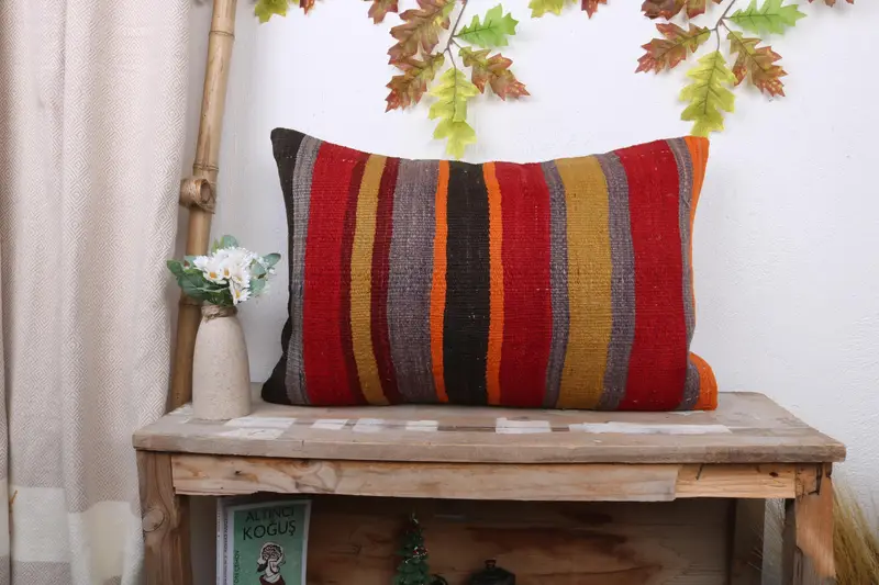 Red and Brown Striped Throw Pillow, Handmade Linen Cushion