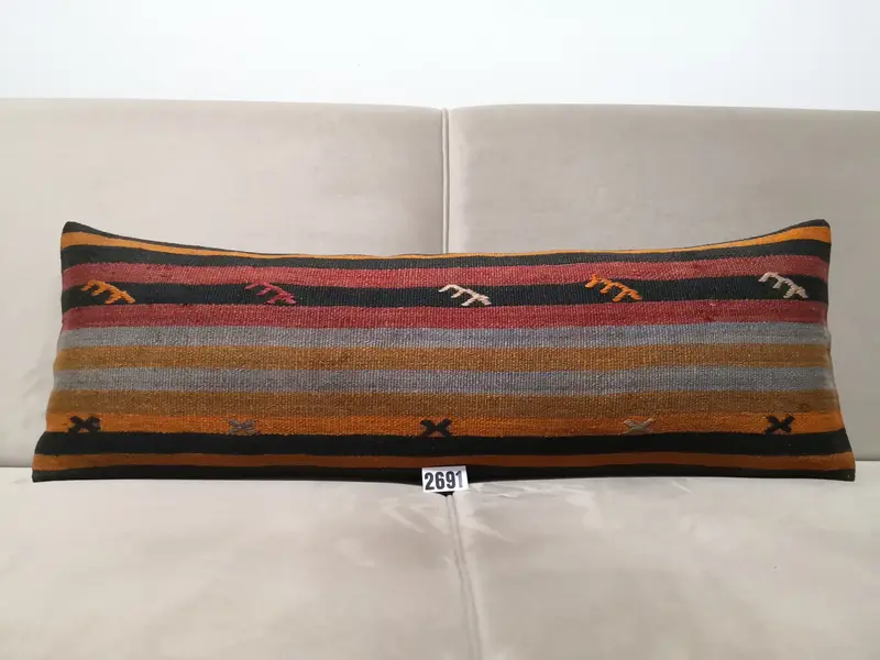 Handmade Striped Wool Throw Pillow, Vintage Rectangular Cushion