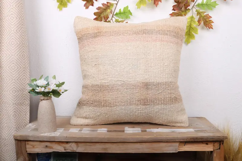 Beige & Brown Striped Pillow, 20x20 Vintage Throw Pillow