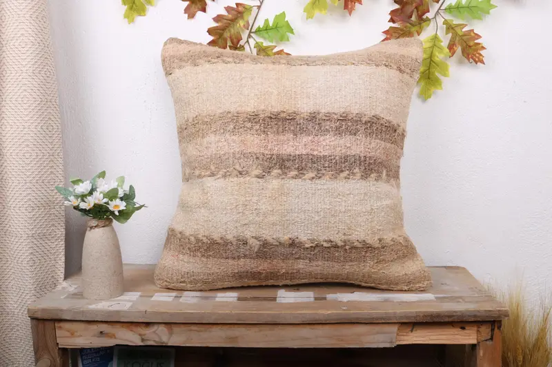 Beige & Brown Southwestern Throw Pillow, Vintage Embroidered Cushion