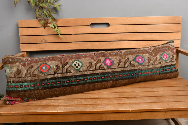 Handmade Embroidered Brown & Gray Pillow, Southwestern Throw Pillow