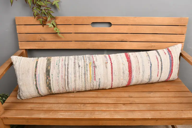 Beige & Red Striped Pillow, 12x48 Embroidered Throw Pillow