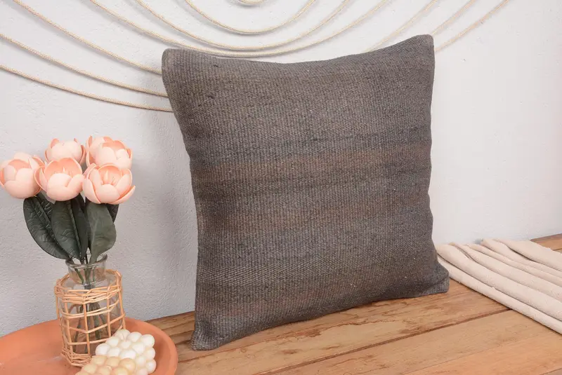 Brown Southwestern Embroidered Throw Pillow, 20x20 Handmade Cushion