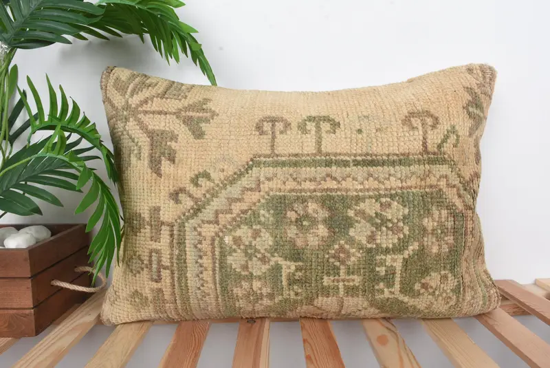 Handmade Brown & Beige Geometric Throw Pillow, Vintage Rectangle Pillow