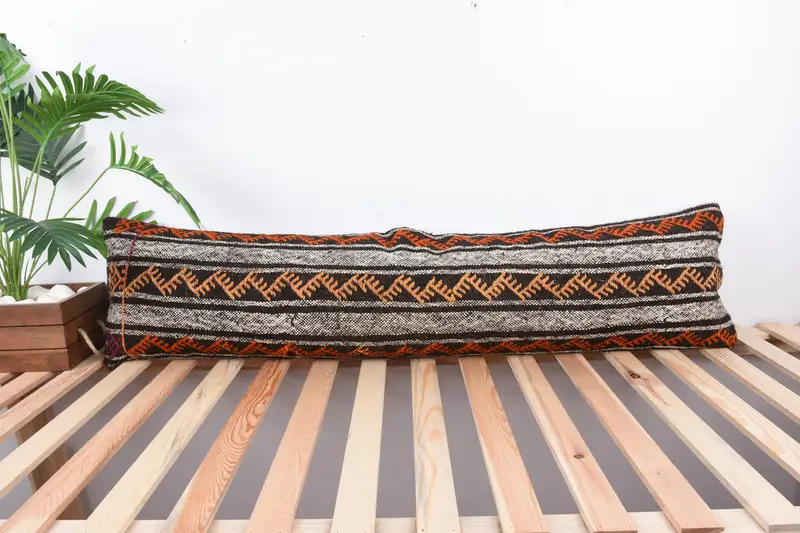 Brown & Orange Patchwork Throw Pillow, Handmade Rectangular Pillow