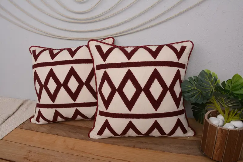 Handmade Southwestern Throw Pillow, Vintage Embroidered Cotton Linen Cushion