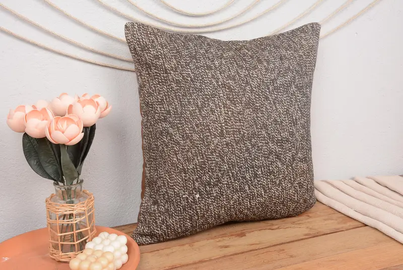 Brown Southwestern Embroidered Throw Pillow, 20x20 Handmade Cushion