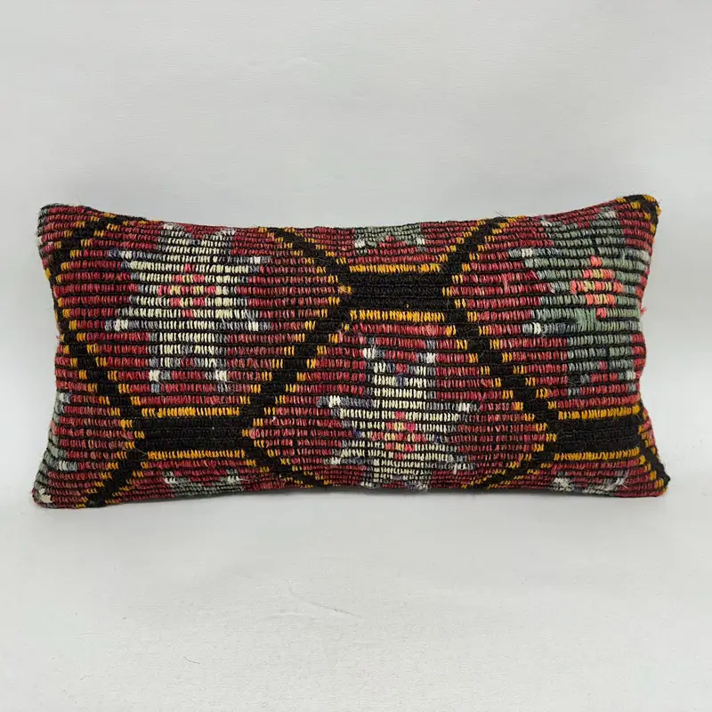 Red Southwestern Embroidered Throw Pillow, Handmade Vintage Cushion
