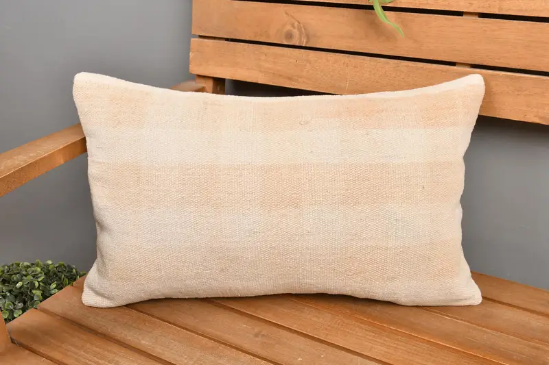 Beige Southwestern Embroidered Throw Pillow, Vintage Handmade Cushion