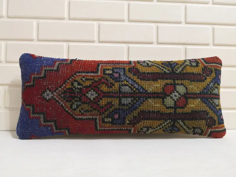Handmade Embroidered Wool Throw Pillow, Geometric Red & Yellow Pillow
