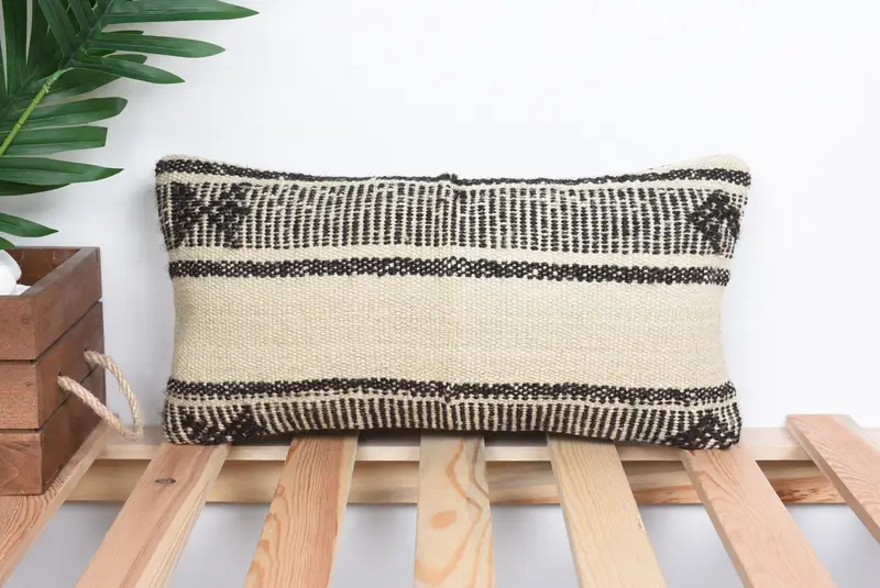 Handmade Striped Throw Pillow, 8x16 Embroidered Rectangle Pillow