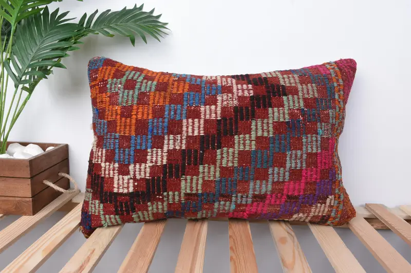 Red & Orange Embroidered Throw Pillow, Handmade Geometric Cushion