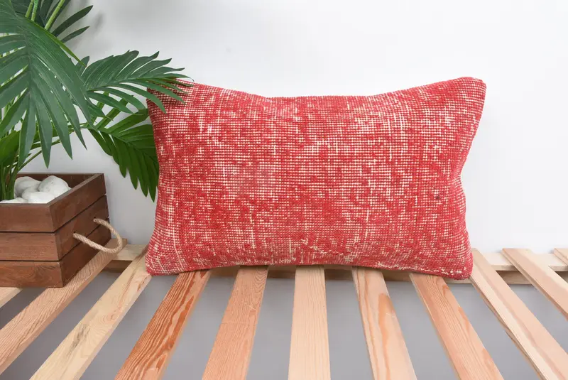 Red Southwestern Embroidered Throw Pillow, Handmade Vintage Cushion