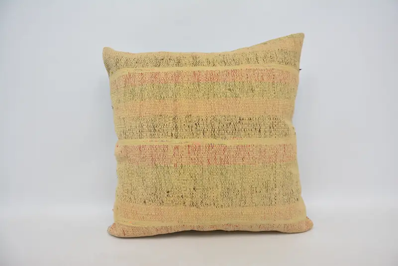 Brown & Green Striped Throw Pillow, Vintage Handmade Cushion