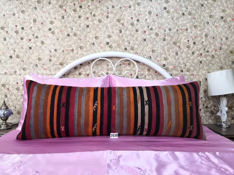 Handmade Striped Wool Throw Pillow, Red and Yellow Rectangle Pillow