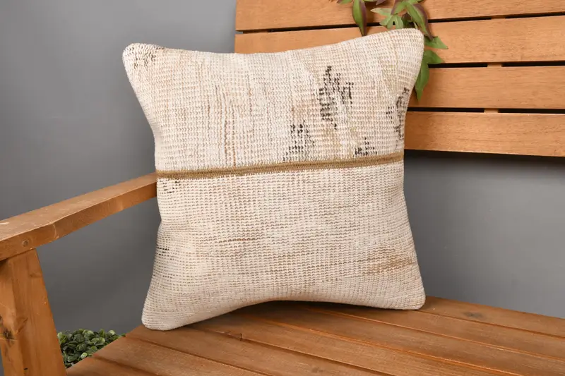 Beige & Brown Patchwork Throw Pillow, 16x16 Embroidered Cushion