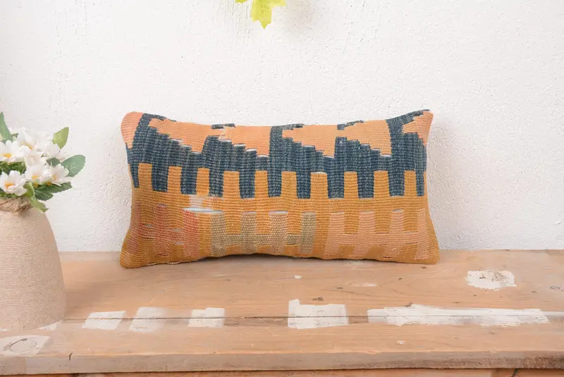Orange & Bronze Geometric Pillow, Vintage Rectangular Throw Pillow