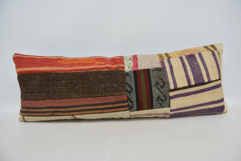 Brown & Red Striped Hemp Throw Pillow, Vintage Square Pillow