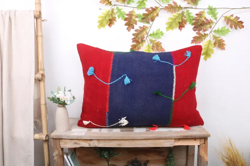 Blue & Red Striped Throw Pillow, Handmade Linen Pillow