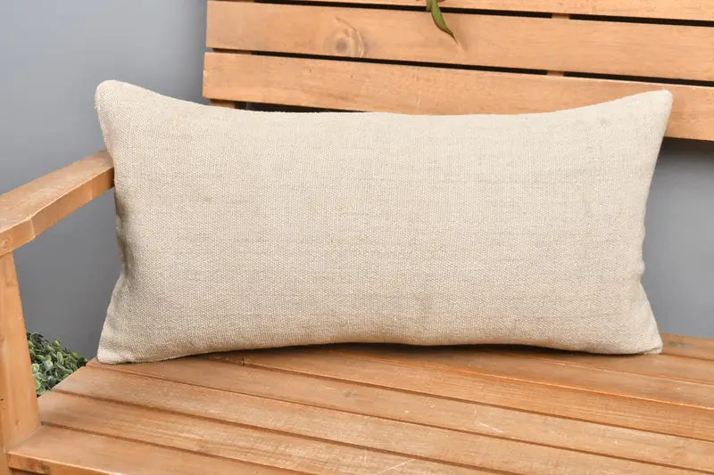 Beige Southwestern Embroidered Pillow, 12x24 Handmade Throw Pillow