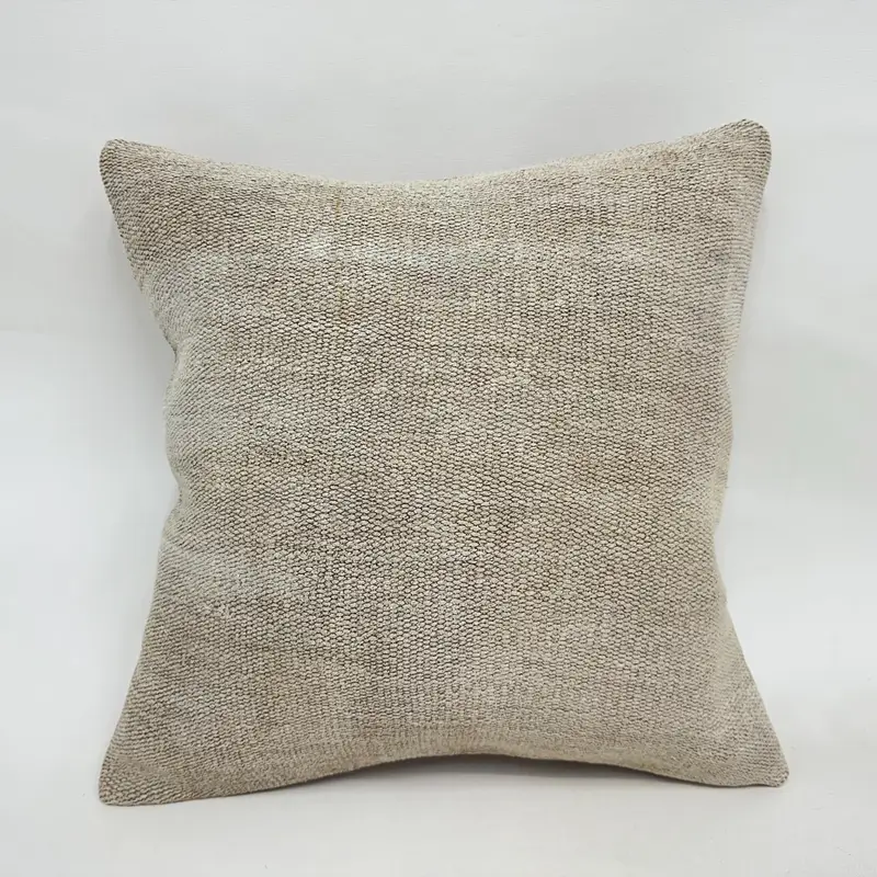 Beige Southwestern Embroidered Throw Pillow, Vintage Handmade Cushion