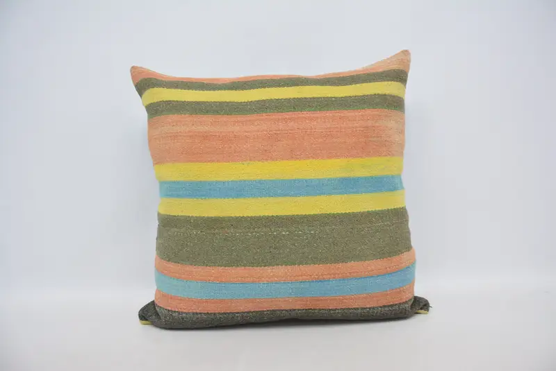 Handmade Striped Throw Pillow, Vintage Embroidered Patio Pillow