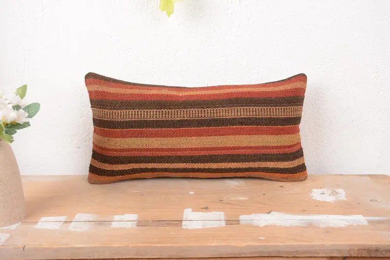 Red & Brown Striped Pillow, 8x16 Embroidered Throw Pillow