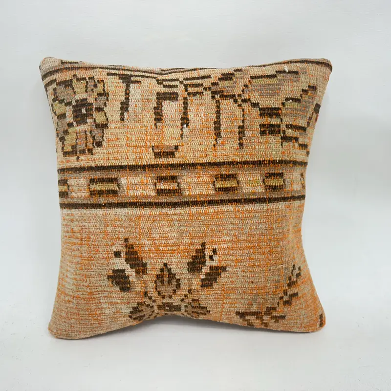 Orange & Brown Embroidered Southwestern Pillow, Vintage Throw Pillow