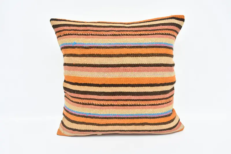 Handmade Striped Throw Pillow, Vintage Embroidered Cushion