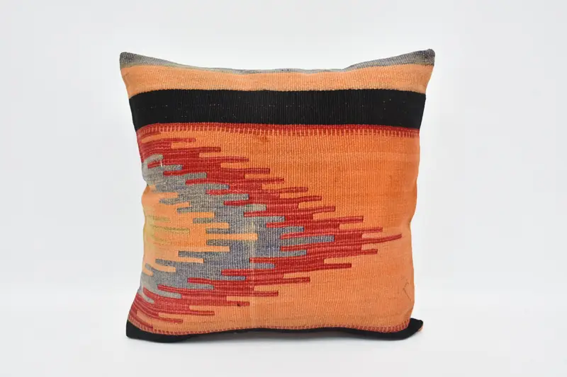 Orange & Red Geometric Throw Pillow, Handmade Hemp & Wool Cushion
