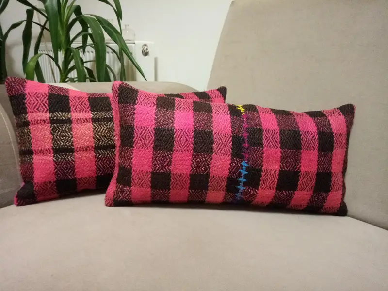 Handmade Wool Throw Pillow, Embroidered Vintage Rectangle Cushion