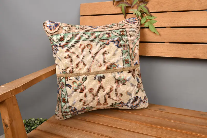 Craft Room Patchwork Throw Pillow, 16x16 Embroidered Cushion